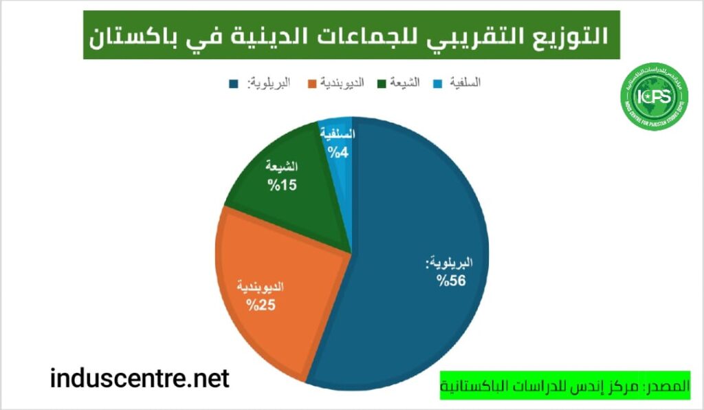 وقبل الشروع في رصد مواقف هذه الجماعات الدينية، من الضروري إيضاح الوزن السكاني لكل منها داخل المجتمع الباكستاني، بما يساعد القارئ على فهم طبيعة التفاعل الثقافي والأيديولوجي في باكستان مع القضايا ذات البعد الديني والمذهبي.وبحسب دراسة مسحية تقريبية أجراها مركز إندس للدراسات الباكستانية، فإن التوزيع التقريبي للجماعات الدينية في باكستان يأتي على النحو الآتي: